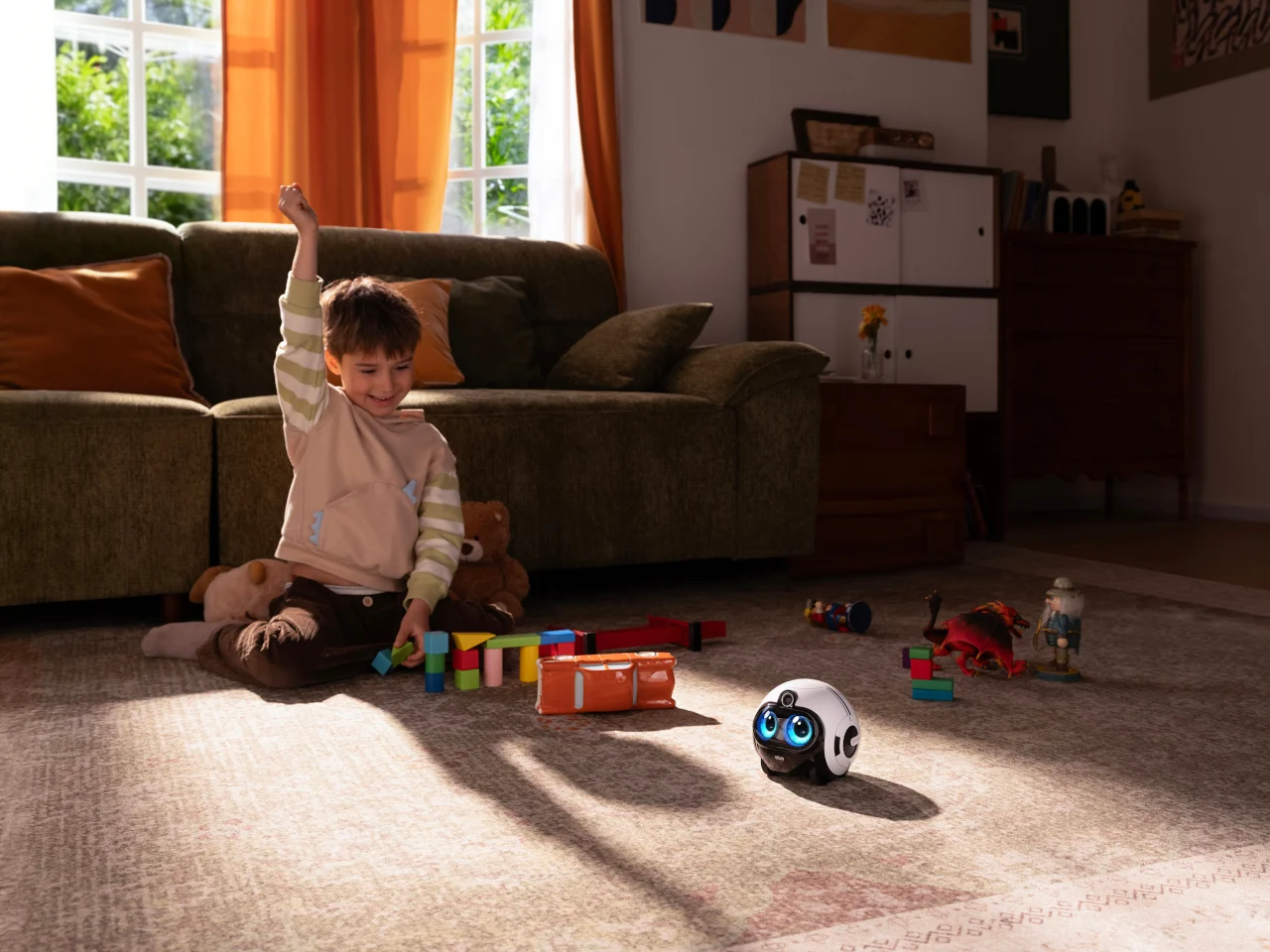 يتبنى روبوت EBO Max FamilyBot من شركة Enabot نهجًا مختلفًا تمامًا. فهو روبوت صغير الحجم، ذو جسم مستدير بحجم كرة القدم تقريبًا، بعيون كبيرة معبرة، وقادر على التجول بشكل مستقل في جميع غرف المنزل. وبدلًا من أن يبقى على الرف منتظرًا التحدث إليه، يبحث EBO Max عن الأشخاص الذين تعرف عليهم، دون الحاجة إلى توجيه أي أوامر.